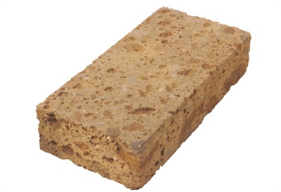 Falazótégla formájú tufablokk. Felhasználható fünyíró szegélyként és boltívek, borospincék stb. építéséhez.