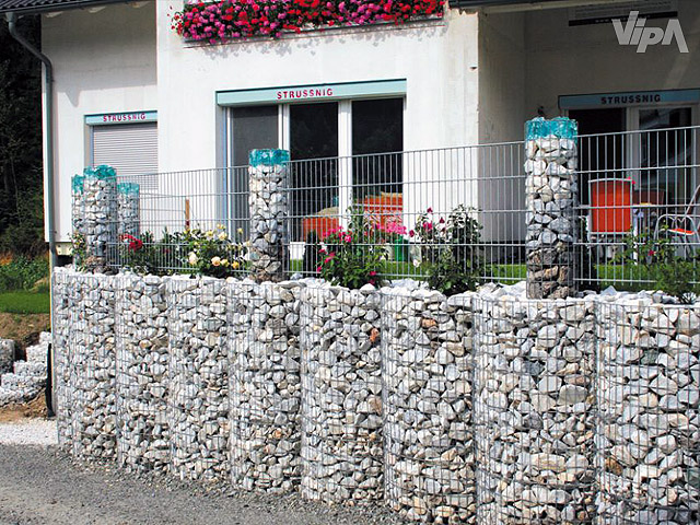 A kerítés rendkívül gyorsan, „tiszta” technológiával építhető (nem szemetelünk), a kivitelezés nem igényel speciális szaktudást, azonban az oszlopok pontos beállítása igen lényeges. Ennek a típusú kerítésnek egyik nagy előnye, hogy kevés alkatrészből áll, könnyű összeépíteni. A töltőanyag fagyálló zúzott kő, esetleg kulé, de lehetőség van további töltésvariációk kialakítására is.